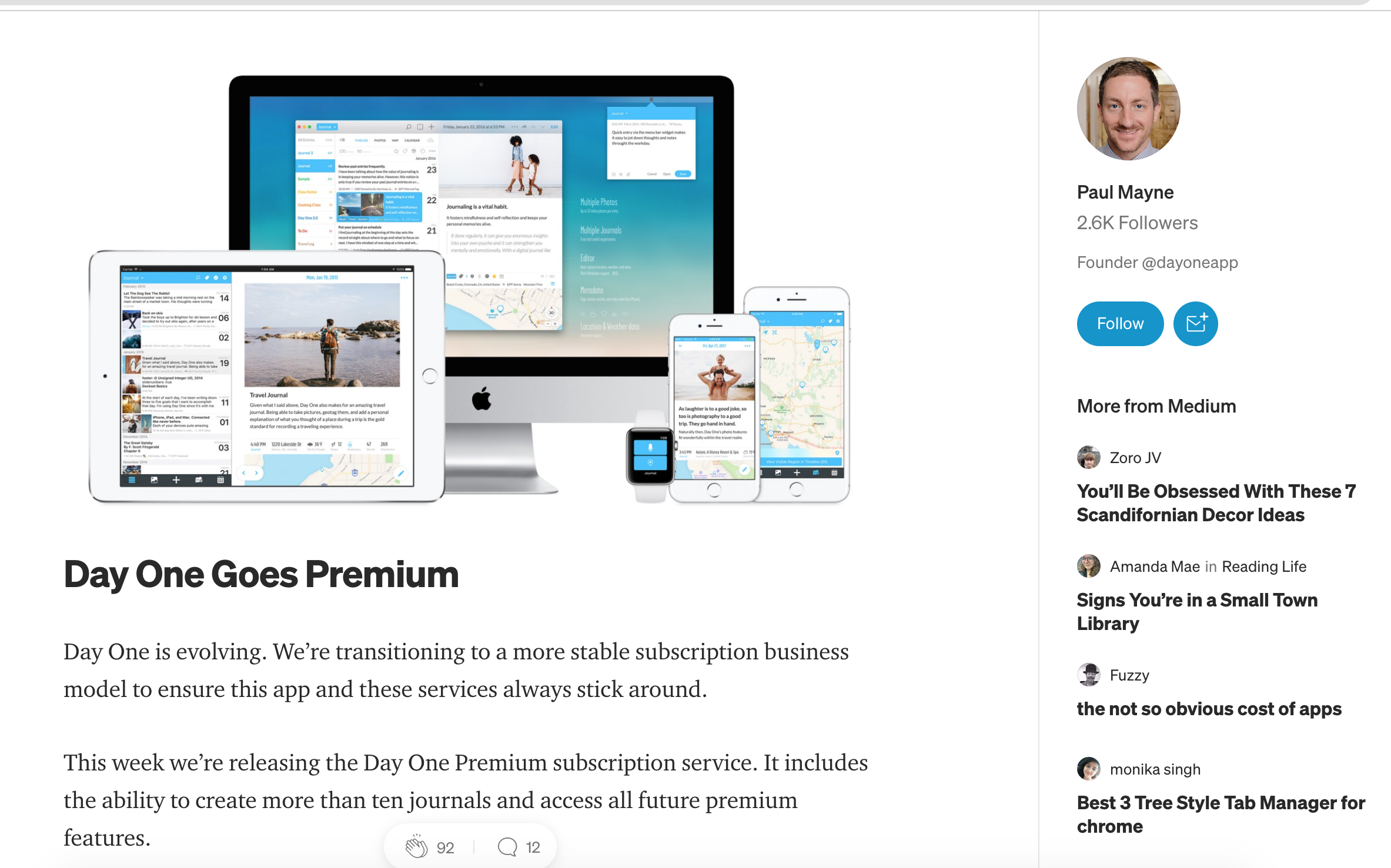 Mayne, P, 2017, Available: https://medium.com/day-one/day-one-goes-premium-424492fd0a5b (Accessed 2nd June 2022)