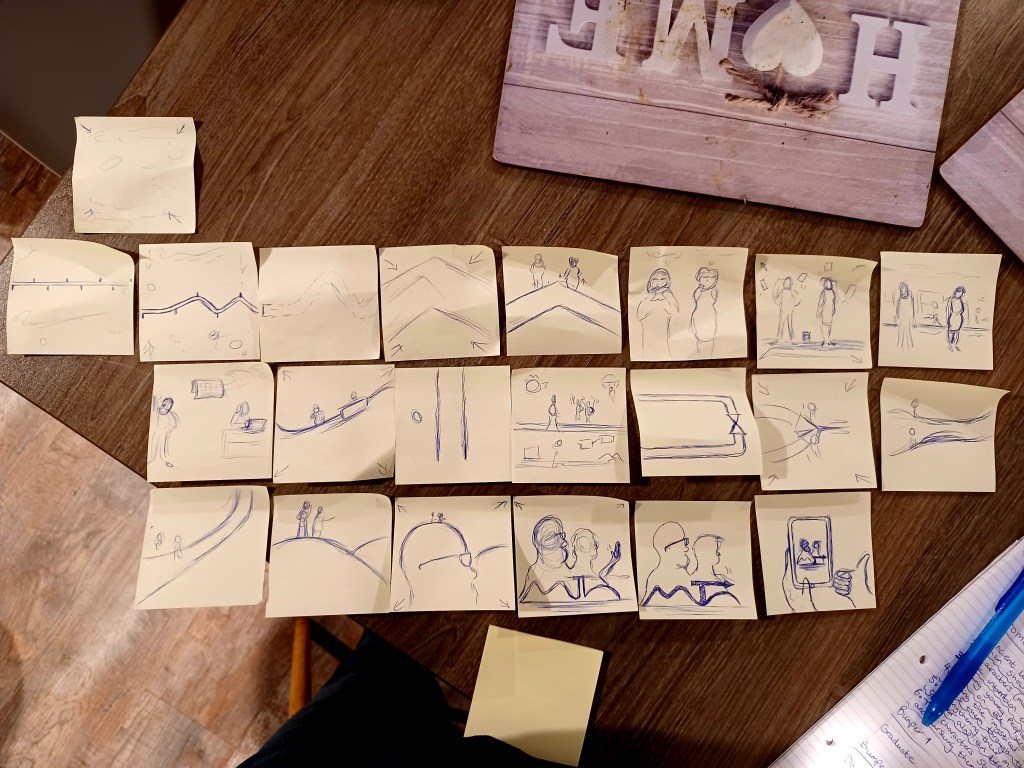 Storyboarding began on the brand’s online advert; I intended to use multimedia in the advertisement; motion graphics to portray character and typography assets, which would be crucial to utilise within the narrative-storytelling trend I set out to showcase. I was also intent to utilise photographic imagery or video where possible to help the audience understand how to use the product, as well as showcasing FOMO scenarios in creating promotional posters.