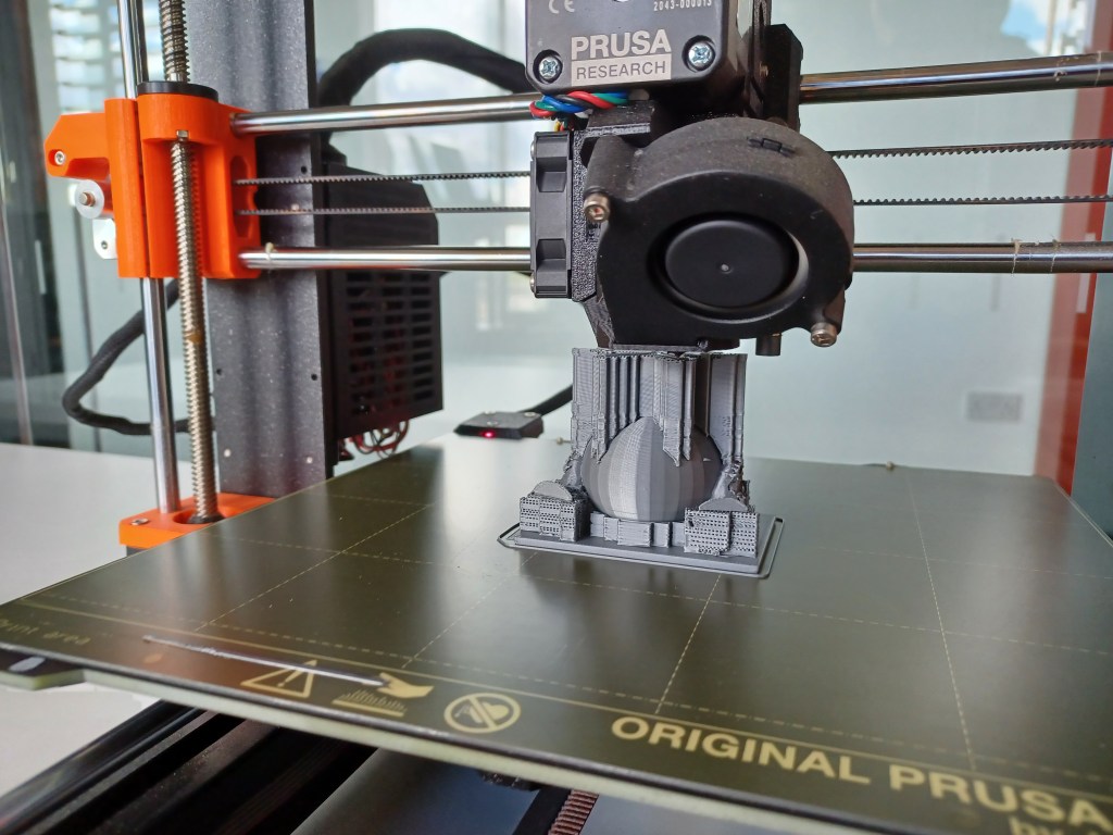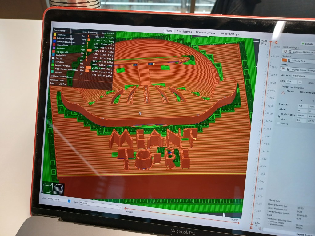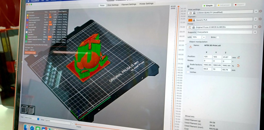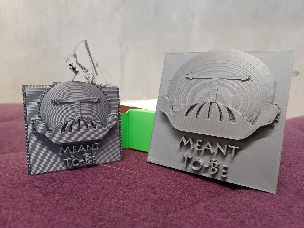 This enabled me to challenge myself further; learning how to ‘draw’ and extrude a 3D object, as well as transferring the file into PrusaSlicer. I managed to produce two versions of the logo, one which would stand at an angle, while another featured a flat under-surface, resembling an ancient slab, both of which proudly evidence my achievements.