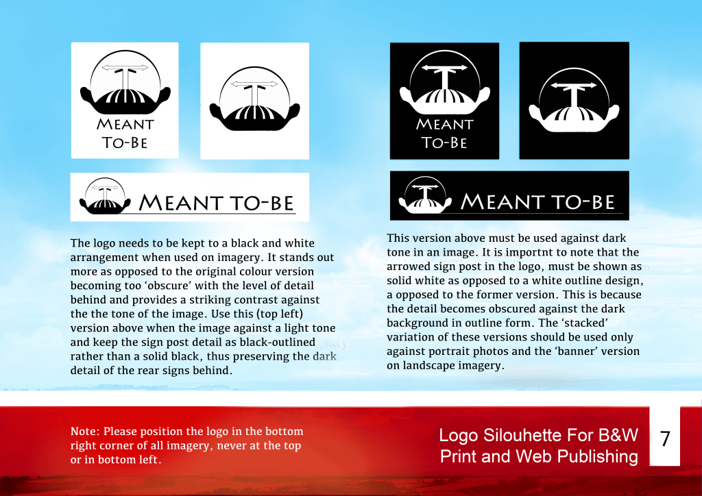 Convinced with the colour contrast, I temporarily settled on a design that utilised the profile silhouettes of the intended stakeholder with the brand initials portraying a sense of the user going on a journey and pursuing a new horizon. The ‘M’ symbolises the many mountains one has climbed, the ’T’ as a sign post for new direction and the ‘b’ merged with the former, showing the ‘dawn’ motif (Gallery 8).