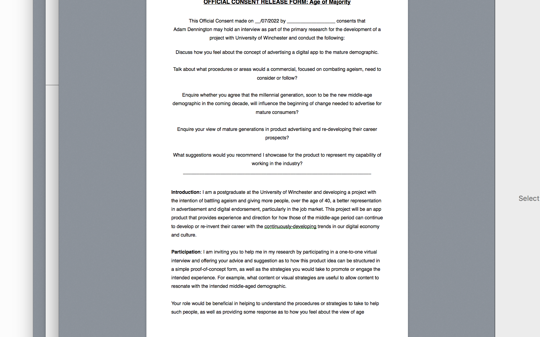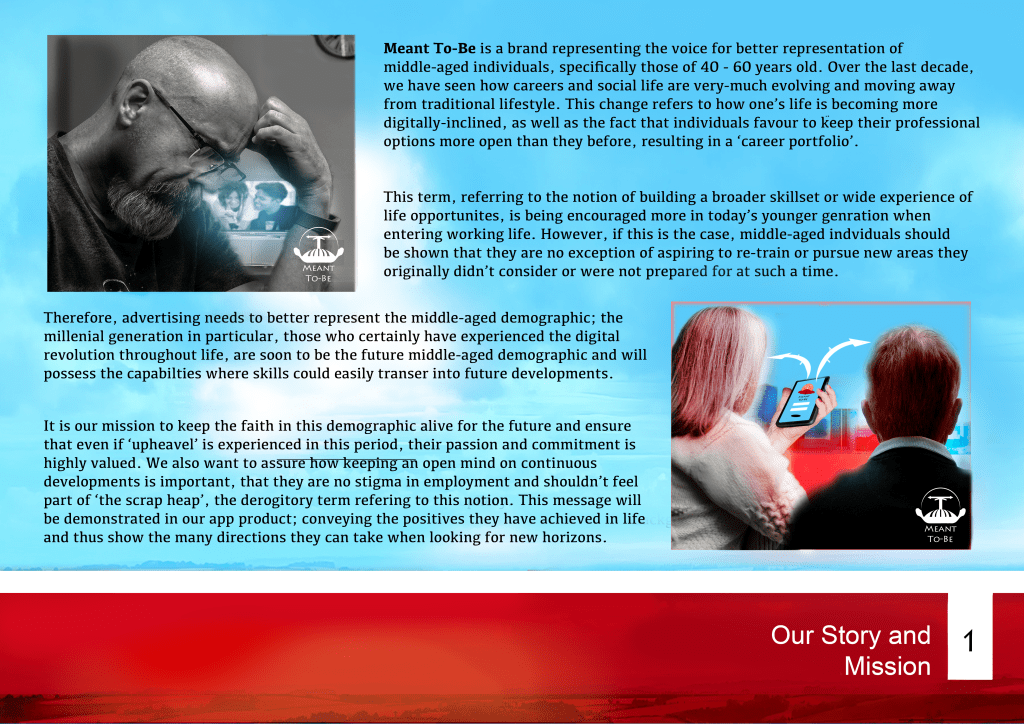 My final module at the University of Winchester: my proposal explored the question of whether advertising strongly reflects the middle-age demographic positively. I found how many people moving through life at present are expected to prepare for a portfolio career; adapting skills into new fields, as opposed to a ‘career for life’ of past times (HR Voices, 2018). Therefore, more positivity should be shown for those at such an age in this situation. I took it upon myself to develop a brand advocating a product that offers an alternative for this group of stakeholders, giving them a voice and diversifying our digital culture for future generations.