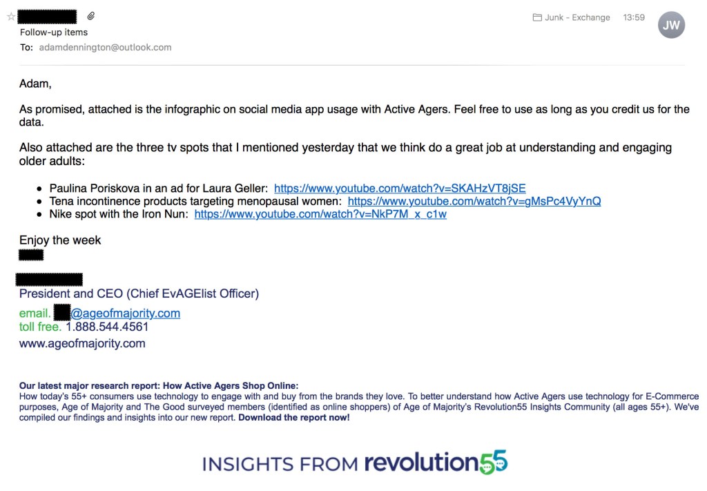 My proposal identified how the millennial generation, who will soon embody the middle-aged demographic, are increasingly embracing online developments (GOF, 2019), but there comes the question as to whether they will be strongly represented in future advertising; having opportunity to explore with future learning and developments.