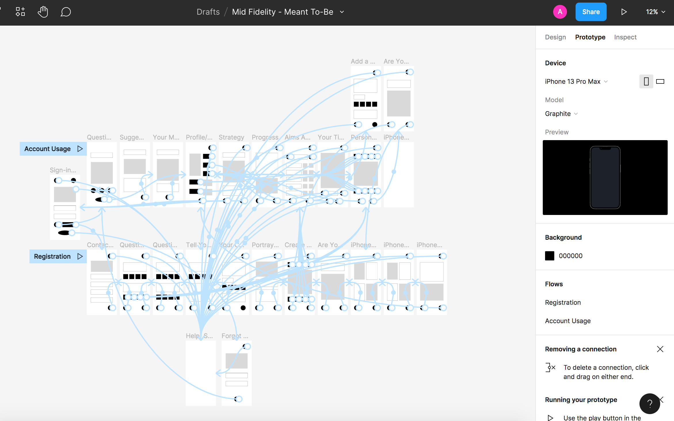 I intended to create the high-fidelity wireframe in Figma, an online UX platform that is becoming extensively used in industry, of which I had begun to use in the mid-fidelity phase. However, I found that I could preview no more than three pages on the platform, since it required me to buy an upgrade package. I moved the design to Adobe XD, which I had previously used in my first semester. It was an opportunity to further my skills with the programme and discover new techniques to build the experience in a more effective method.