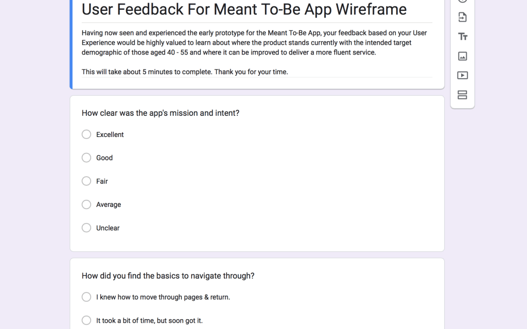 I arranged to speak with a UX professional to provide insight on my wire-framing; upon sharing my intention and plan, the source stated that the name of the brand, Make Fate, didn’t sound entirely appealing and to consider a phrase that describe one’s achievements clearer. I realised that ‘Meant To-Be’ was a term that most people understood and indeed summarised one’s achievements in life positively.