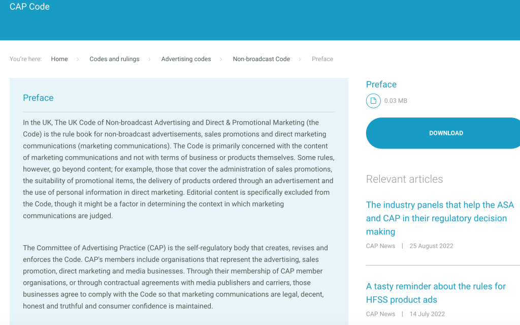 Advertising Standards Authority, Non-broadcast Code Codes and Ruling, Official Website, 2016 (Sixth Edition). Available at: https://www.asa.org.uk/codes-and-rulings/advertising-codes/non-broadcast-code.html (Accessed July 7th 2022)
