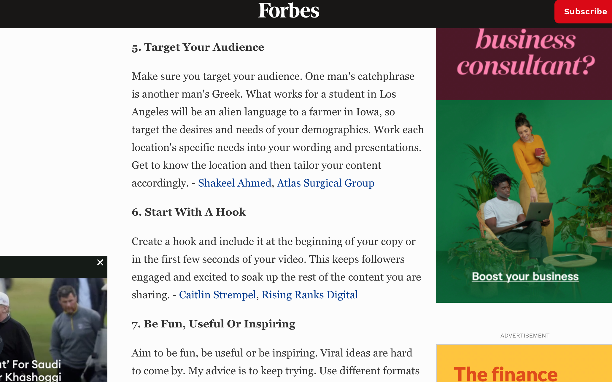 Forbes Council Member, 2021, 12 Ways To Grab Attention With Content, Forbes.com. Available at: https://www.forbes.com/sites/forbesbusinesscouncil/2021/04/27/12-ways-to-grab-attention-with-content/?sh=59d35621445b (Accessed 22nd May 2022)