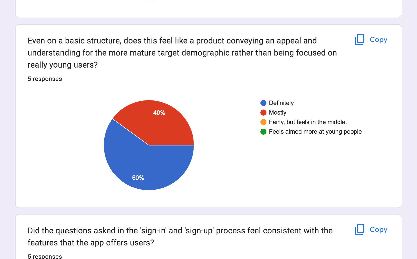 Concluding the qualitative research of my wireframe, the product and mission was received on a positive level. However, it was stated the navigation of pages was a process that required somewhat adjusting to through continuous usage, but respondents felt convinced that the product was recognising them in their own interest as opposed to a younger audience.