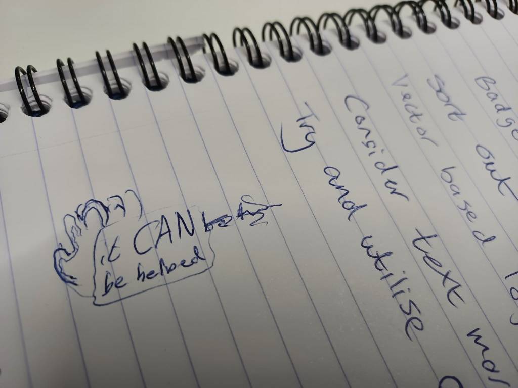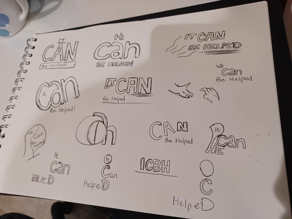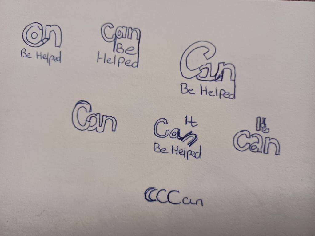 I sketched out some rough ideas of how the logo could appear; I wanted to emphasise the word ‘CAN’ as the focal point since that was the verb that summarised the goal. In addition, adding some subtly of the logo being ‘off’ would symbolise how nobody is perfect in life. Many different suggestions were sketched out, but it would take colour and further experimentation to move further on the logo.