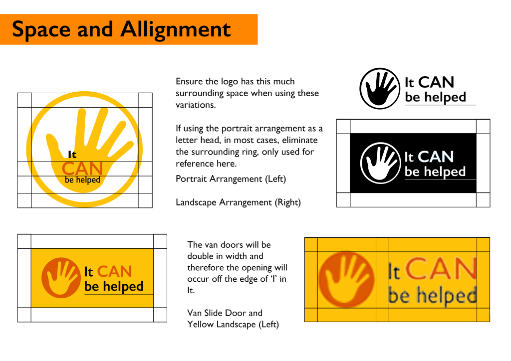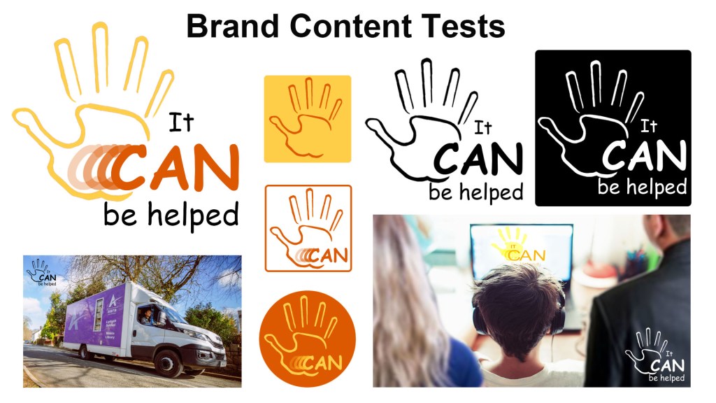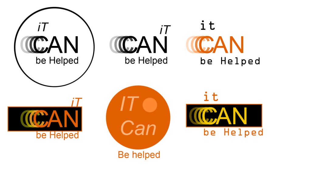 I eventually discarded these ideas; despite the intent, the logo had to maintain a streamlined approach, such as keeping the word “It” on the left of the image to avoid averting the gaze in the wrong place. The decision was made to have “CAN” be presented in the intended orange and to keep the text black to distinguish the verb more thoroughly. I had considered making the text a yellow colour, but found that it would be difficult for people to read against a white background.