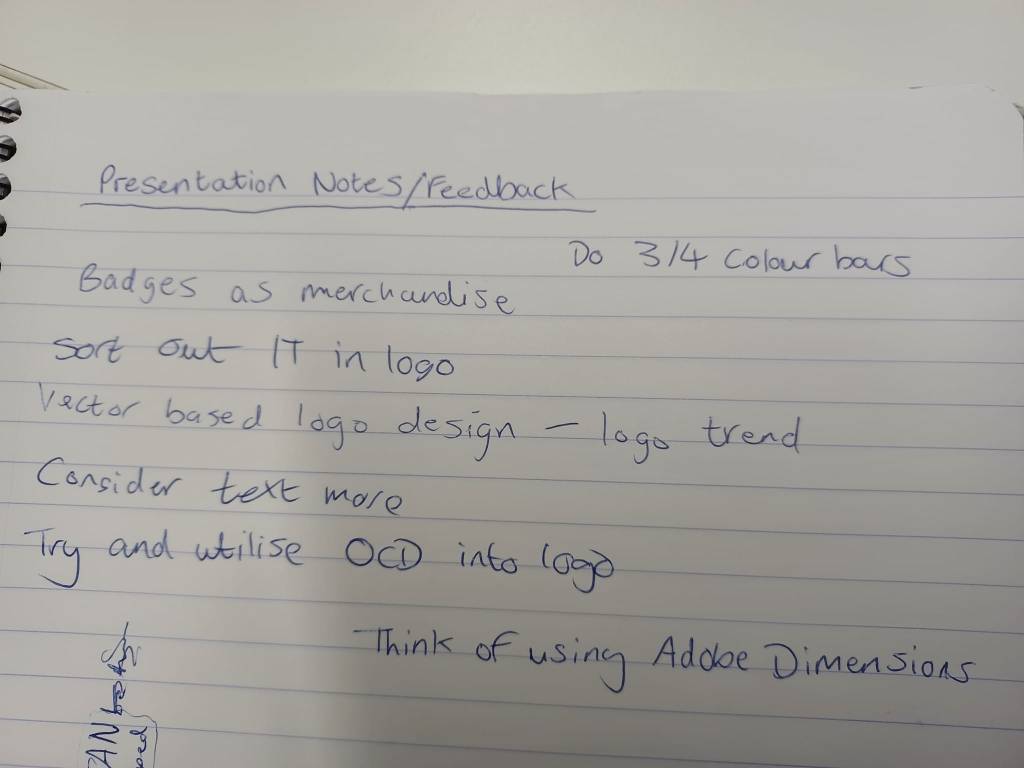 Regarding feedback, I received a couple of further suggestions for how to improve the logo, such as giving it a sharp and vectorised edge as opposed to the charcoal brush that I had experimented within the second drafts. My peers stated how this design choice not popular in corporate groups and should become more refined in style, plus it was also suggested that the “IT” in the logo should be changed to”It” to avoid confusion with the word appearing to be the initials for Information Technology.