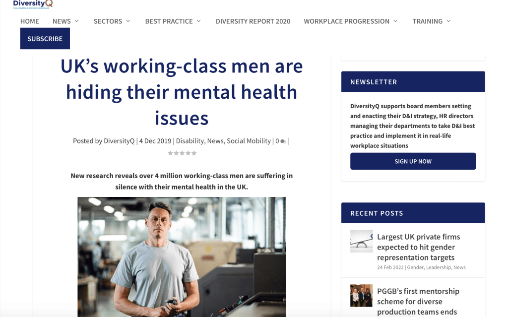 A source published by DiversityQ, stated how a finding in 2019 revealed that a majority of working-class men have more levels of mental health than one might expect. I was most intrigued by this perspective and it occurred to me how there may be cases of individual people in working-class communities, who may feel they can’t reach out or find the courage to share their feelings or welfare. While this source did not specify that OCD was the primary occurrence, it nevertheless widened thoughts as to how I could target and strategise my campaign.