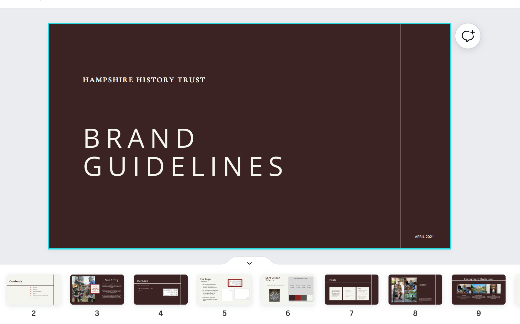 Looking at brand guidelines for Hampshire History Trust and Slack, I took note of how the group used HEX codes when colour is required and state the desired font choices for typography purposes. I took notes from this regarding the various areas I needed to apply to my own guideline, for example: showing how the logo would be used and designed on imagery, where to position it on landscape or portrait content, providing a brand story and what decisions to avoid in presenting assets.