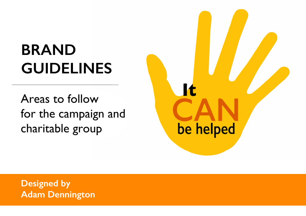 The brand’s logo was shaping into final phase of design, settling on a hand-shape utilising a block yellow colour, as it allowed people to simply identify with the warm and optimistic personification of the brand. Pursuing feedback suggestion of re-working the hand into a sharp and vectorised approach, it showcased a contemporary feel, removing the impression of being a handprint. Regarding the typography, I kept the Ariel font to showcase the name of the brand, but utilised a comic sans font for the potential use of the word “CAN” to add a sense of ease to the serious tone of the accompanying words. The “CAN” would be a terracotta orange with the accompanying words in black, subtly demonstrating the contrast between the brand’s warmth and the serious nature of the subject matter.