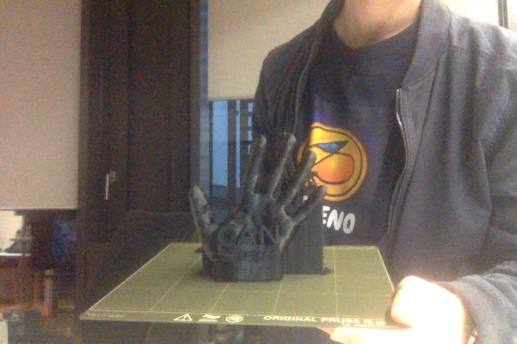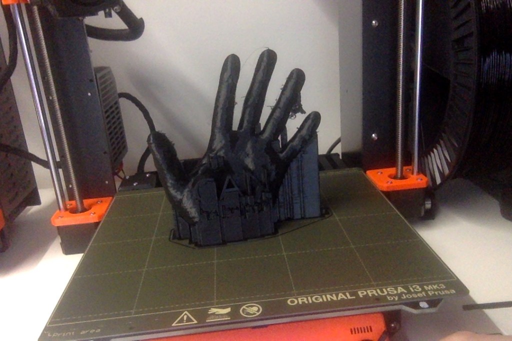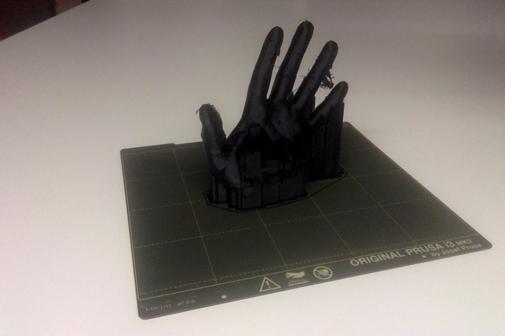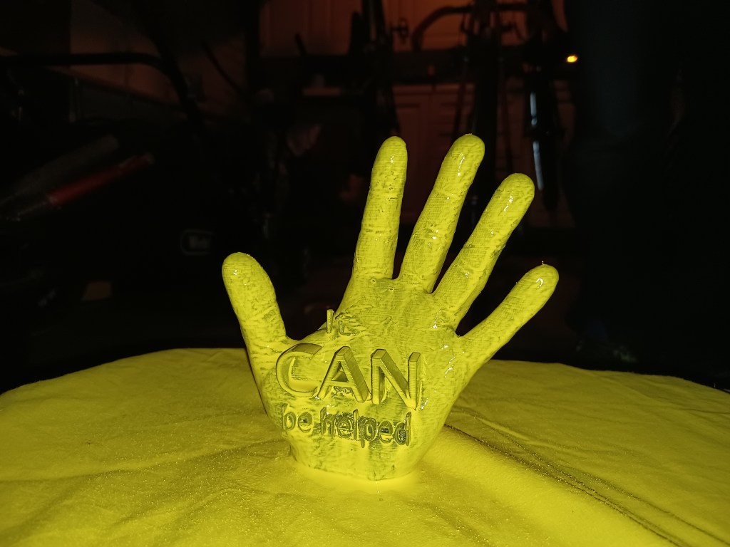 After spraying it yellow, as well as painting it black and terracotta for the lettering, the hand was coated with a layer of lacquer to strengthen it and apply a finishing touch. Considering this was my first experience at 3D printing, I was satisfied with the result and I will be looking to experiment on future occasions.