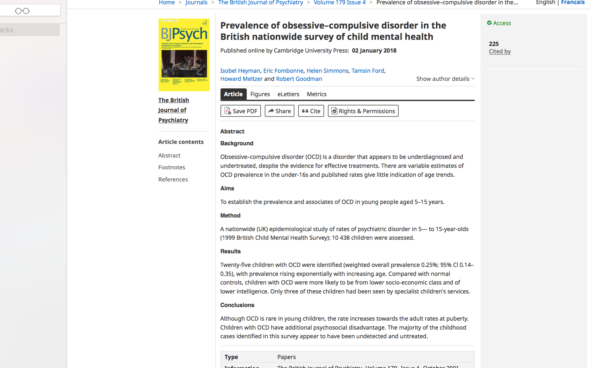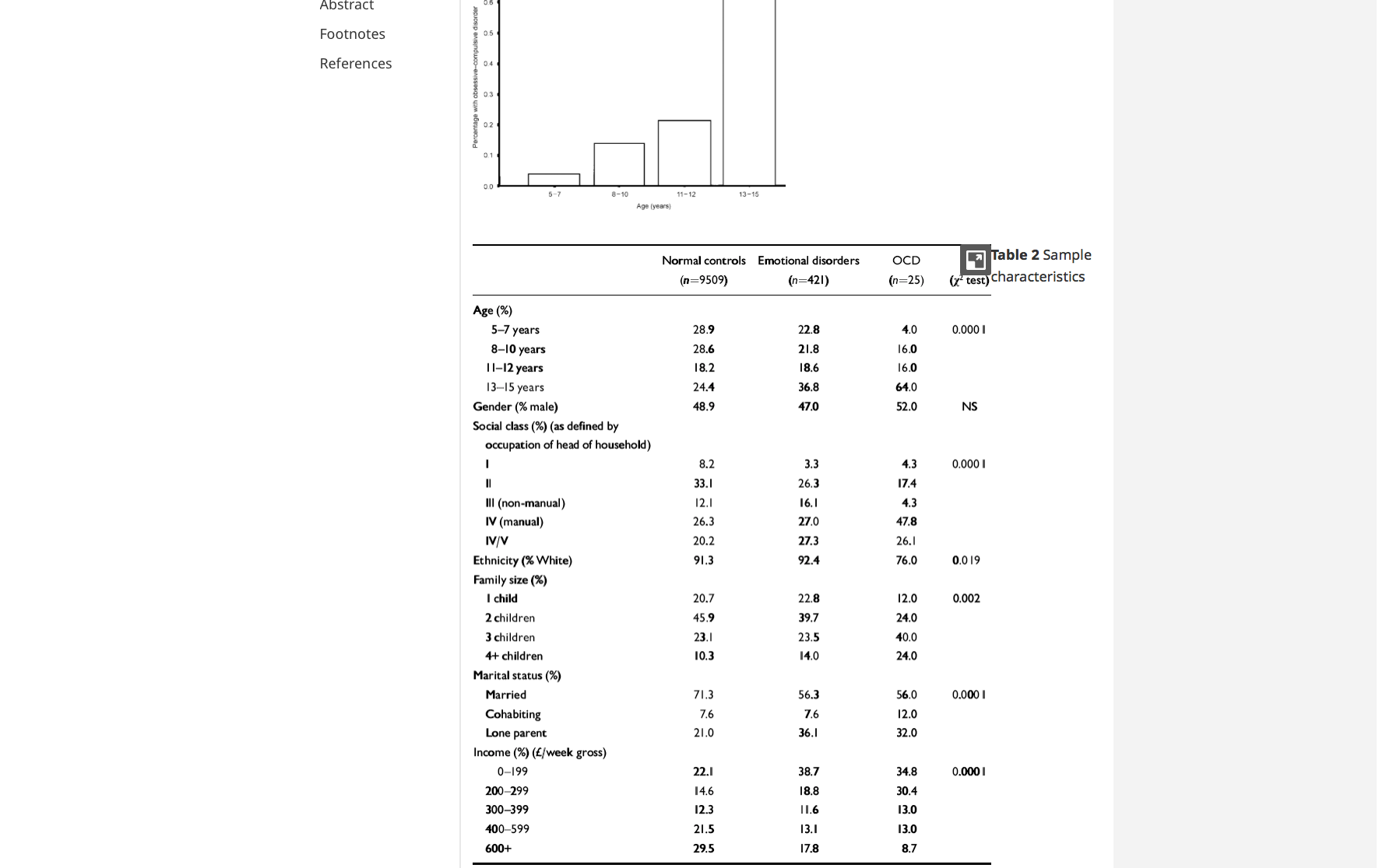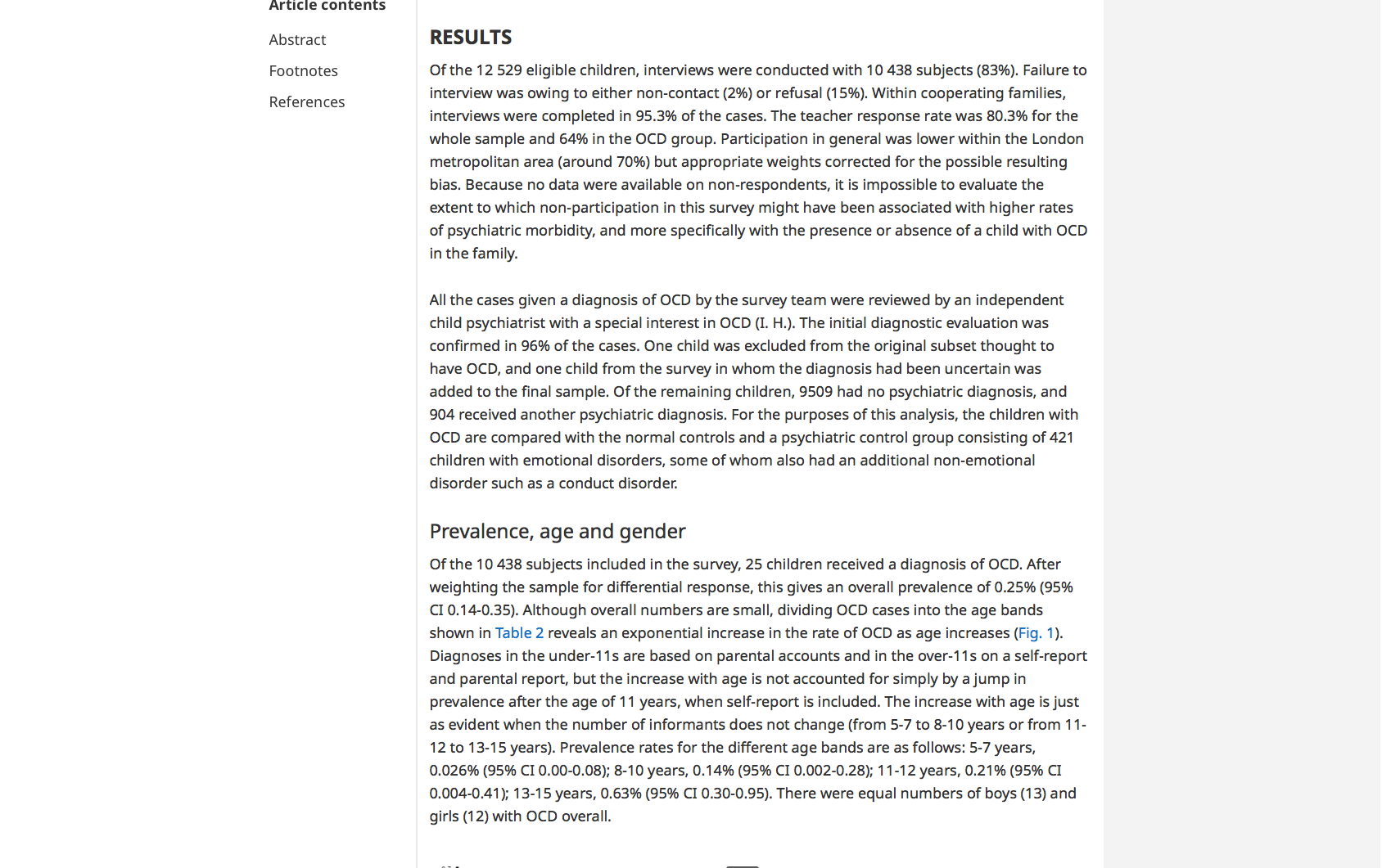 An article on Cambridge Core (Figure 8) identified OCD as under-treated and showed that the majority of individuals who develop serious traits, came from the age range of 12 – 15. It stated how this age period is where most cases cases begin to excel, as well as the fact that these minors had a higher likelihood of coming from lower socio-economic communities, thus deprived of ideal treatment and support.