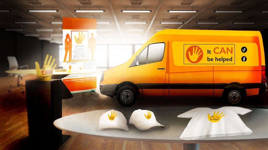 I used Adobe Illustrator and Photoshop to simplify the logo, emphasising the word ‘CAN’ and writinh it with Arial text in solid capitals, as well as adding the effect of the letter C gradually fading to symbolise a sense of nerve, of which individuals would have when coming forward and finding courage to seek support. The use of the word “It” had been experimented with continuously and even the idea of having the lower case letter precede a capital t, as a way of symbolising how the brand was about accepting imperfection.