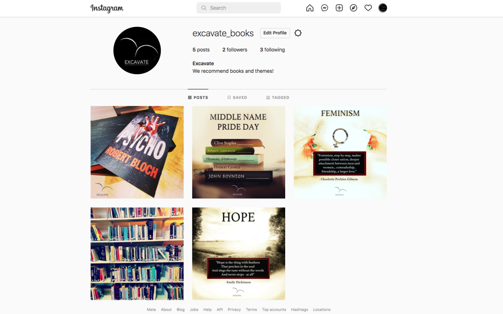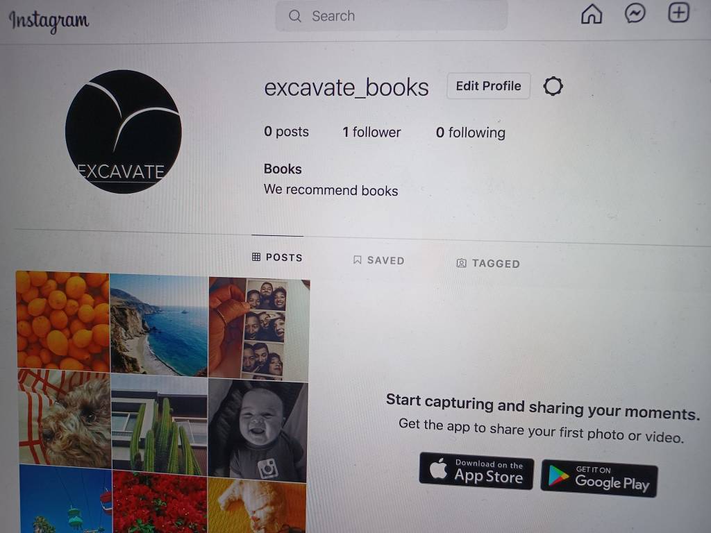 The Instagram account had been active for just over a month, through methodical networking and careful SEO strategy Excavate suddenly benefited from a surge of book enthusiasts in April. The approach of networking shows audience they matter and avoids the brand appearing to be all about what me and my client desire.