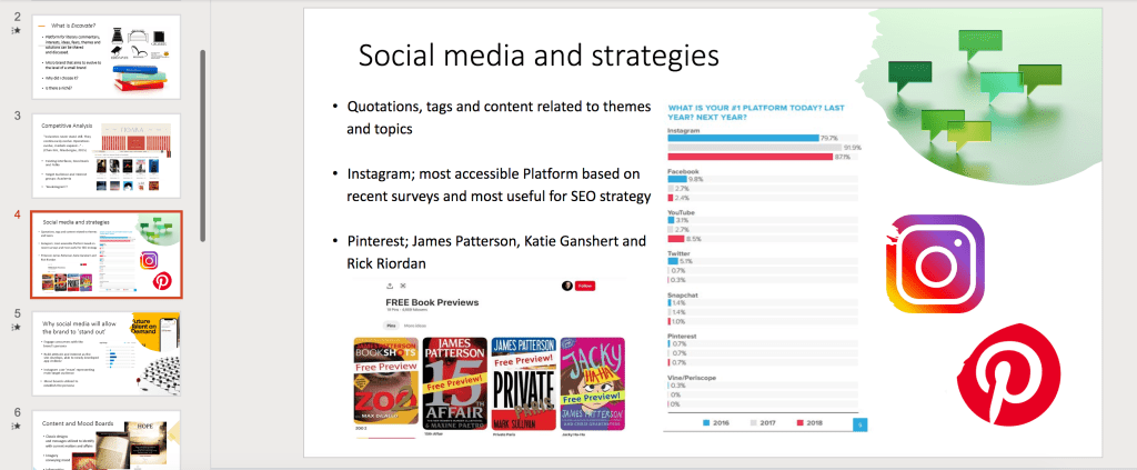 Having the content be simply aimed at academic individuals could somewhat ‘alienate’ a share of consumers, who in actual fact would help drive the brand further with their casual taste of books. I put this to my client upon a fourth meeting and the client agreed on this solution and we also realised that this strategy would help balance the scales between the idealistic consumers and the realistic casual reputation of social media.