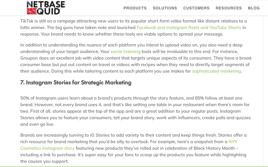A Brafton article (Figure 12) mentions that despite social media being a popular method for trafficking consumers to a website and sharing news, many visit accounts to be entertained, as social media has changed the intake of how we receive information in a less formal manner. Although Excavate is calm in persona and not suitable for extreme platforms such as Tiktok, I considered the possibility of creating reels where subtle character content could be used to entertain, educate or inform people concerning the importance of reading.