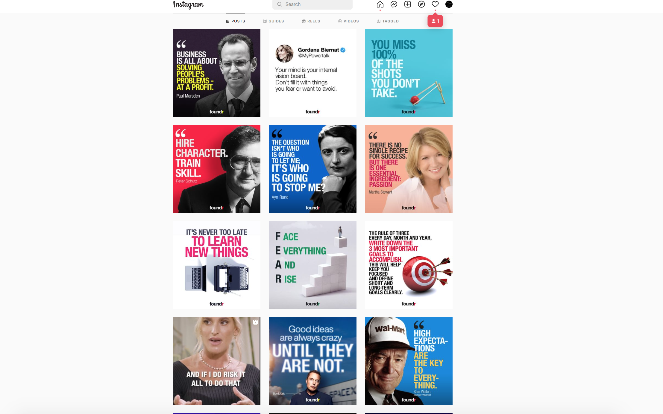 To better understand how one should present social media in an appealing context, an online tabloid called Foundr magazine had amassed a popular following and reputation by showcasing entrepreneurship. It uses social media to encourage determination through the use of metaphors and quotations from professional entrepreneurs (Figure 16). This example had areas that I felt could be applied casually to Excavate; the use of quotations that were written in a ‘sound-bite’ fashion and presented in bold typography were certainly effective methods to apply the brand’s message intent. I took inspiration from Foundr’s format and merged it with the ‘Online Authenticity’ strategy my client and myself had considered.