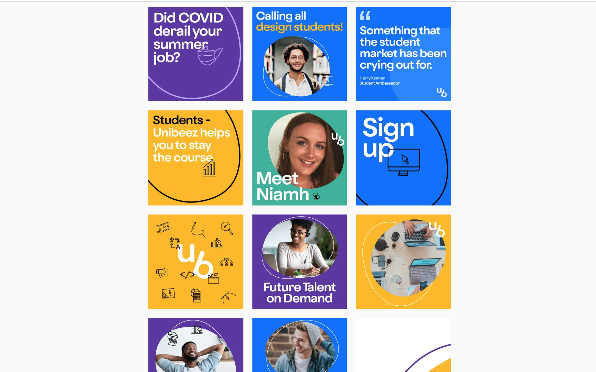 I took influence from a brand called Unibeez and set about comparing the strategy for my client’s brand to this app’s narrative (Figure 7). It made effective use of Instagram and Twitter marketing to build momentum prior to the launching of it’s actual service, which occurred the following year. The content utilised iconic colour design, extensive keywords and questions that resonated with their target audience, specifically of aspiring university graduates, to build the brand’s popularity in the run-up to the service. I went as far as suggesting to my client of possibly showcasing promotional content in the build-up to the Excavate website. However, the client was intent on keeping the content subdued at this stage and seeing it talk about the brand’s discussion-based goal.