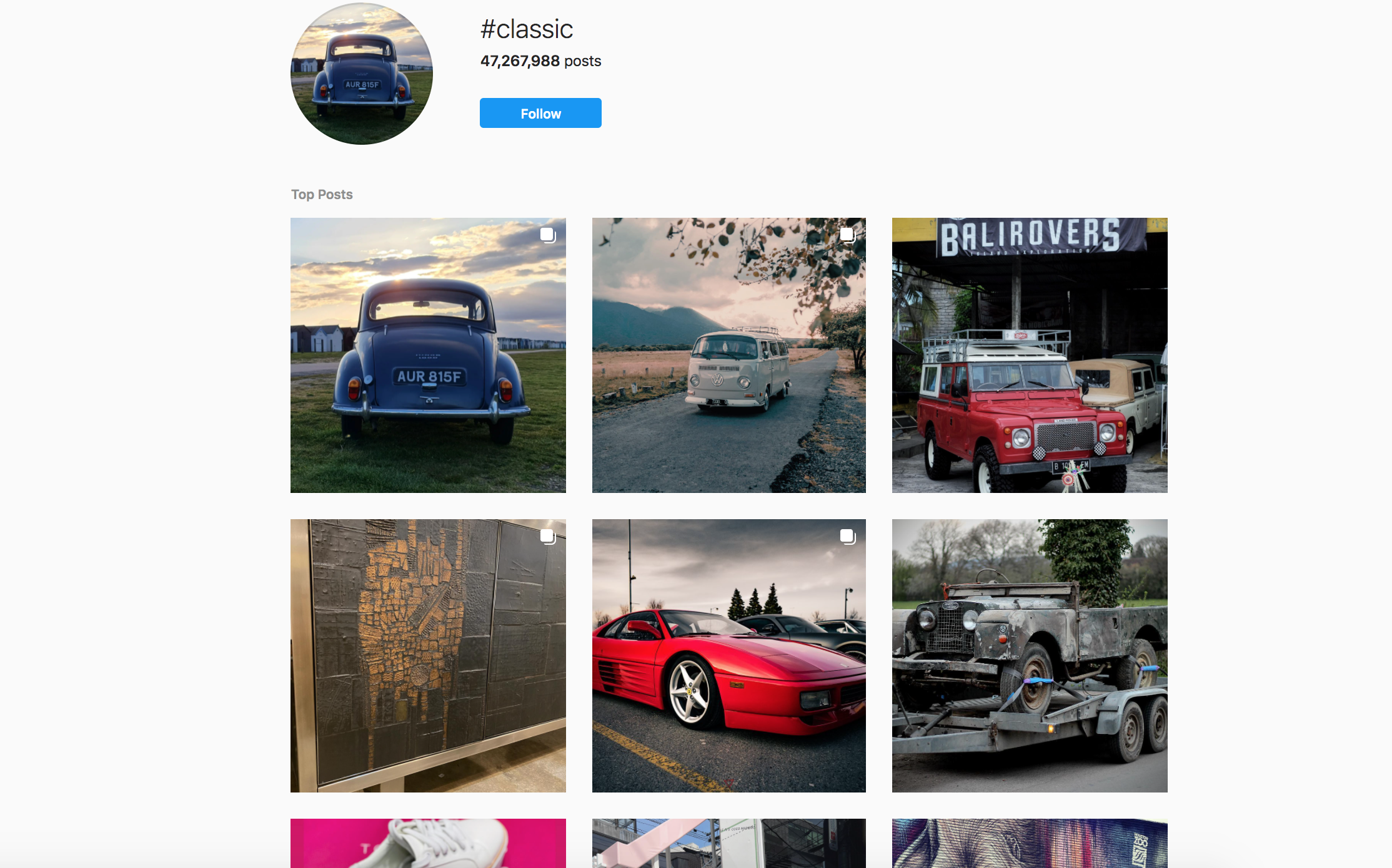 It is important to avoid being general with a tag; for example, Figure 27 shows how a user utilises #classic to promote their Frankenstein novel. However, when clicking on the tag, one realises that the word ‘classic’ can refer to any context since they are presented images unrelated to books, such as cars and quotations, compromising the account’s audience potential.