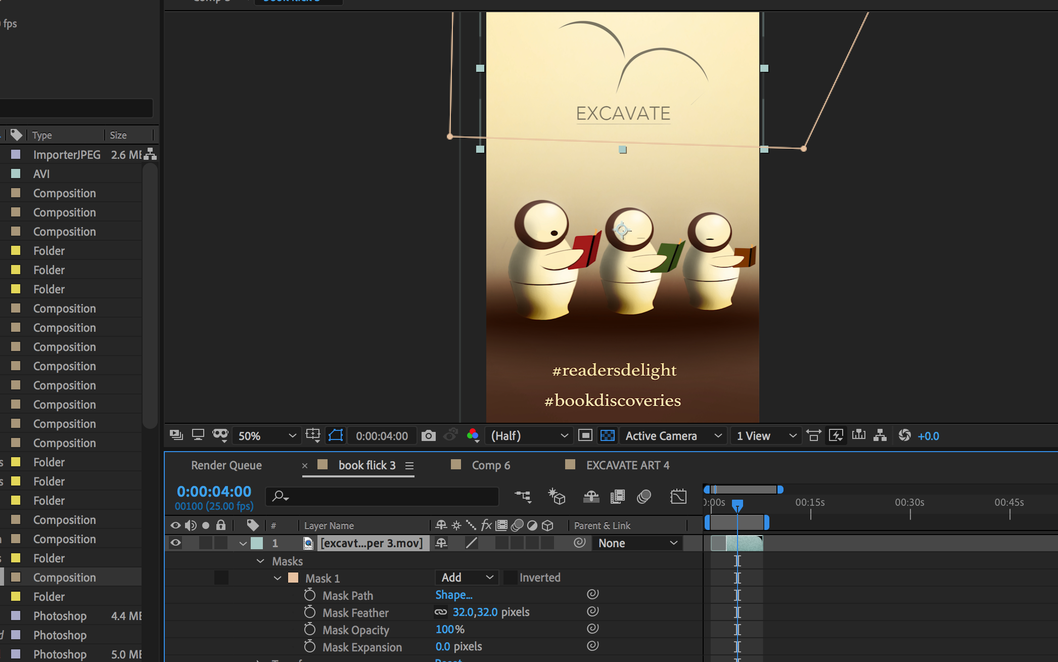 Concerning reels, I realised how this would be a useful opportunity to play to my strengths in animation by producing short clips that utilised quirky movements, such as the flickering of pages to add more appeal and persona to Excavate.