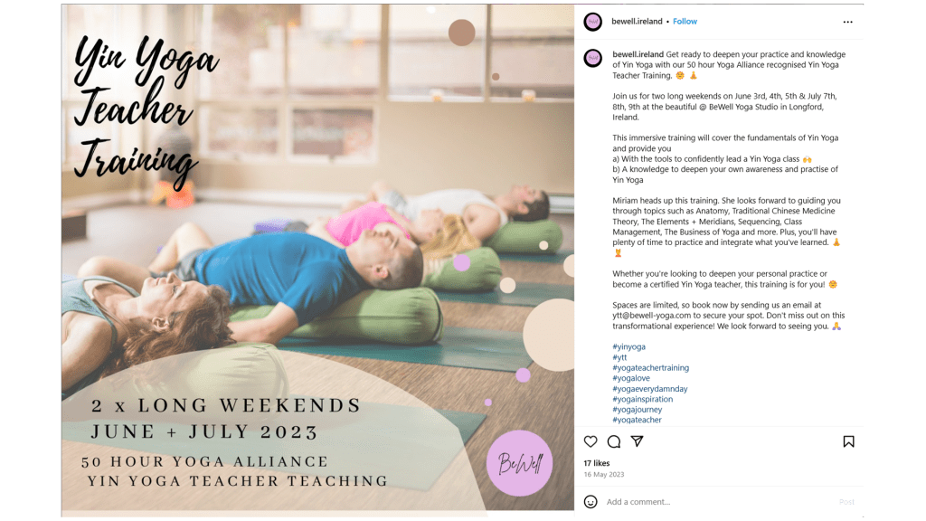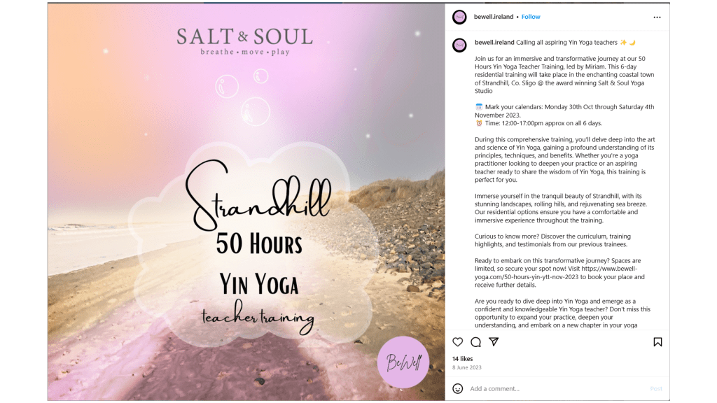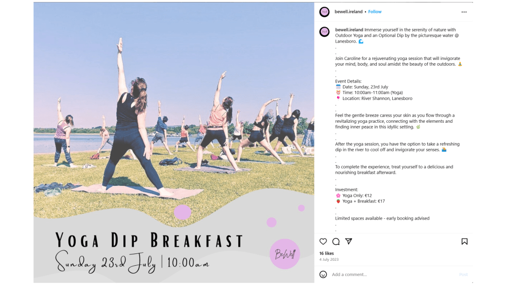 Working closely with a health and yoga group based in Longford, Ireland, I played a pivotal role in elevating their social media campaigns through the implementation of effective SEO strategies and captivating designs. Shifting the narrative away from generic yoga content, my focus was redirected towards highlighting the unique individuals steering the group, as well as promoting upcoming events and wellness products. By infusing a personalized touch into the online presence, the emphasis moved from mere yoga sessions to a more profound connection with the personalities driving the group forward.