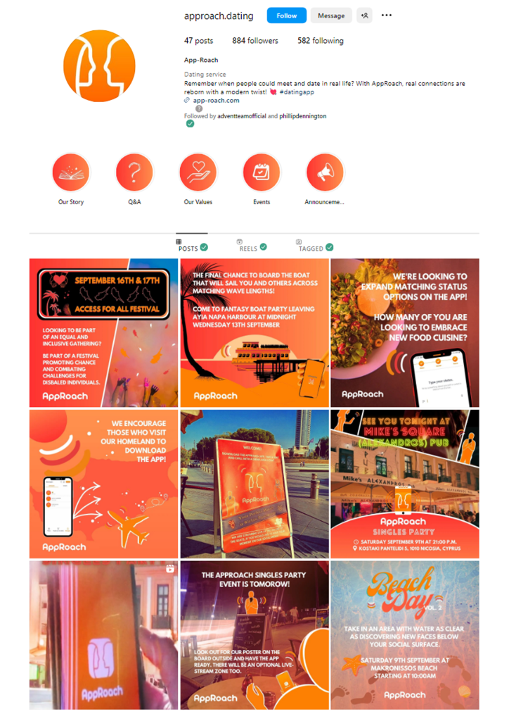 Leveraging my social media expertise, I played a pivotal role in the successful launch of the dating app, AppRoach, in Cyprus. Conducting extensive research on events to promote the app, I contributed to the client’s strategy by suggesting a unique approach. Recognizing the gap in representation for introverted individuals within the dating app market, I advised that AppRoach should target this demographic, offering a niche that resonated with users seeking a more thoughtful and introspective connection. This strategic shift not only differentiated AppRoach from competitors but also addressed the needs of a previously underserved audience, ultimately enhancing the app’s appeal and success in the dating app landscape.